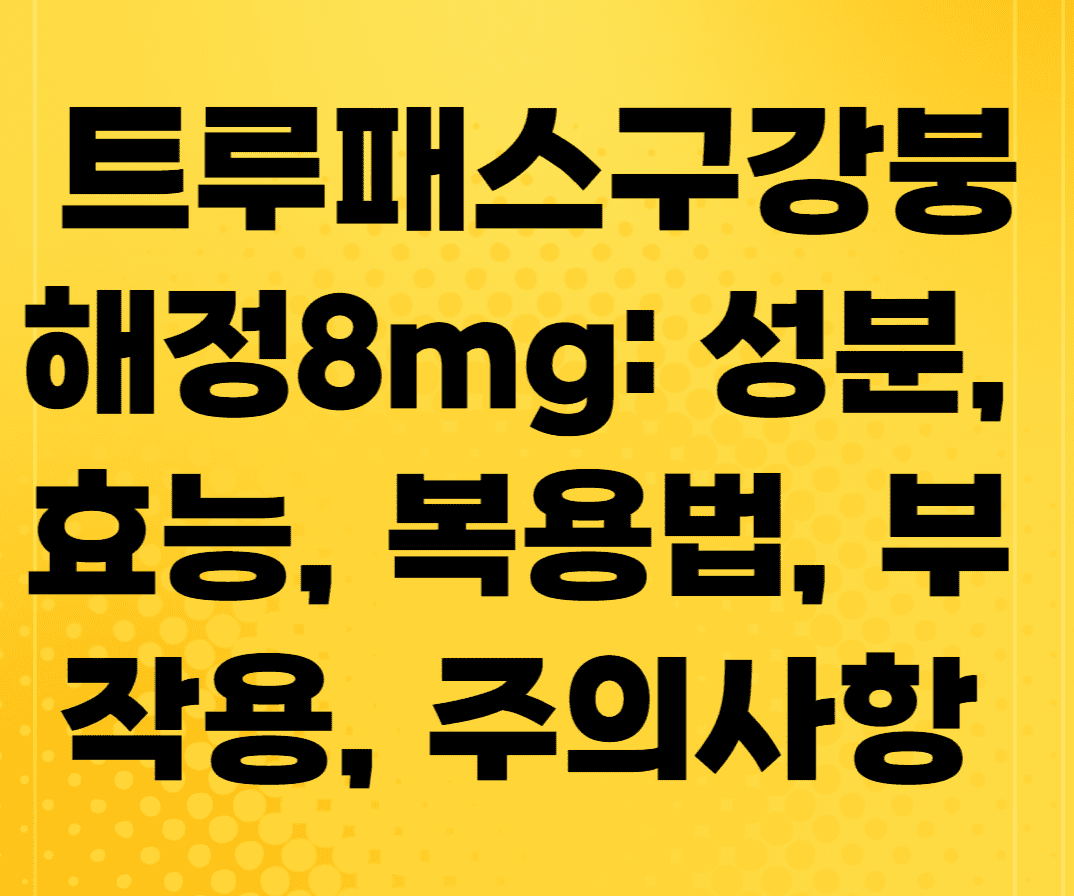 이번 글에서는 트루패스구강붕해정8mg의 성분, 효능, 복용법, 부작용, 주의사항에 대해 자세히 알아보겠습니다.