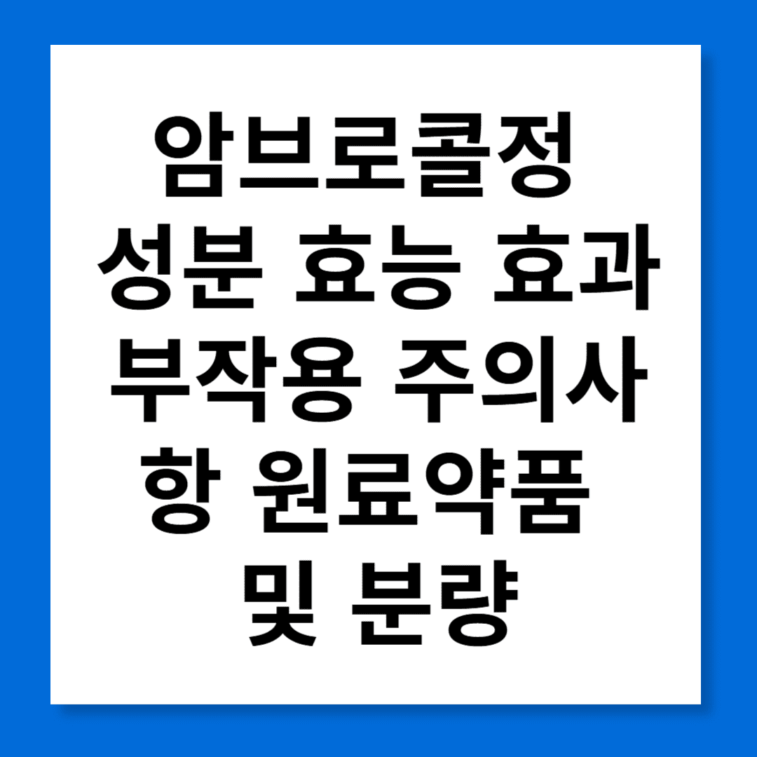 이 글에서는 암브로콜정의 성분, 효능, 효과, 부작용, 주의사항, 그리고 원료약품 및 분량에 대해 자세히 알아보겠습니다.